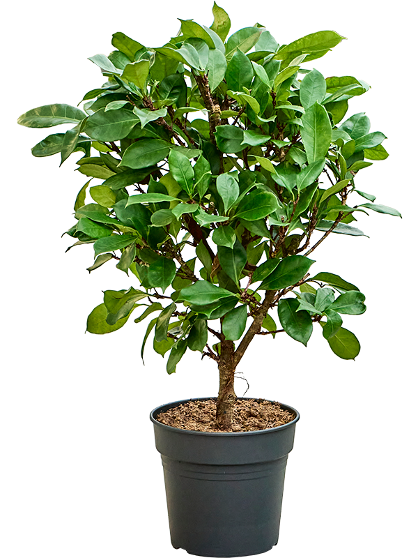 Фикус – вечнозеленое стройное растение с красивыми листьями и ровным стволом. Он быстро растет, эффектно выглядит в интерьере. Растение отлично смотрится в горшке, кашпо, вазоне разных геометрических форм. Используется для озеленения домашних и общественных интерьеров.Любит яркий рассеянный свет без прямых солнечных лучей. Беречь растение от сквозняков. Полив умеренный, следует избегать переувлажнения. Между поливами почва должна подсохнуть. Зимой полив сокращают. Желательно регулярное опрыскивание. Подкормка весенне-летний период каждые 2 недели.Nieuwkoop Europe предлагает широкий ассортимент растений всех форм и размеров. От экзотических пальм до крепких кактусов, от растений для сада и патио до офисных и комнатных растений. Растения поставляются проверенными производителями со всего мира. Именно поэтому Nieuwkoop Europe может гарантировать вам качественные и всегда свежие комнатные растения и цветы из лучших питомников.
