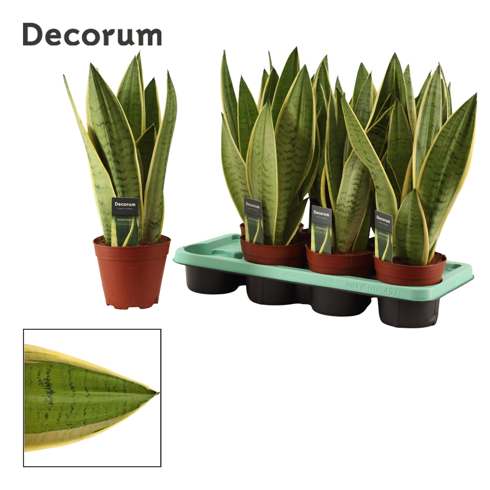 Сансевиерия – декоративно-лиственное растение, которое заставляет восторгаться своим оригинальным внешним видом. Необычный окрас листьев позволяет круглогодично восхищаться его красотой в интерьере дома, квартиры, офиса, общественного и коммерческого помещения. В отличие от красивоцветущих экземпляров, декоративно-лиственное растение никогда не теряет свою яркость и пышность.Любит яркий солнечный свет, переносит прямые солнечные лучи. Полив с весны до осени регулярный, между поливами почва должна просохнуть. Зимой полив сокращают. Подкормка весенне-летний период каждые 6-8 недель удобрениями для кактусов.Nieuwkoop Europe предлагает широкий ассортимент растений всех форм и размеров. От экзотических пальм до крепких кактусов, от растений для сада и патио до офисных и комнатных растений. Растения поставляются проверенными производителями со всего мира. Именно поэтому Nieuwkoop Europe может гарантировать вам качественные и всегда свежие комнатные растения и цветы из лучших питомников.